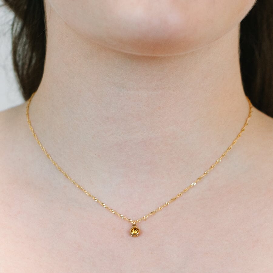 Wear your November pride around your neck with this delightful Round Bezel Birthstone Necklace. Showcasing a stunning topaz gemstone nestled in a polished bezel setting, this piece radiates warmth and sophistication. Whether you're treating yourself or surprising a November-born friend, this necklace adds a sparkly personal touch to any look. A playful way to celebrate what makes your birth month uniquely yours.